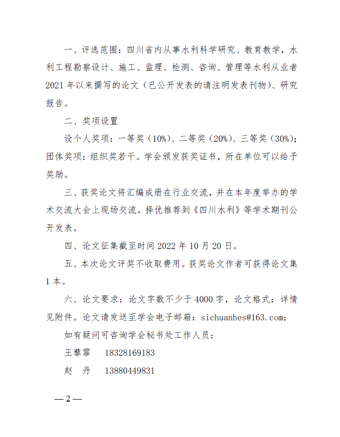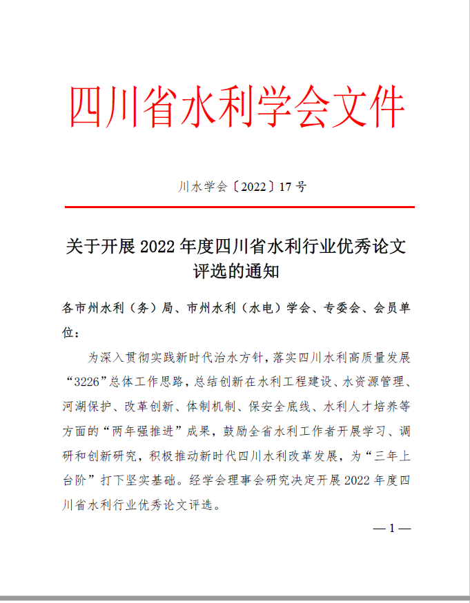 关于开展2022 年度四川省水利行业优秀论文 评选的通知