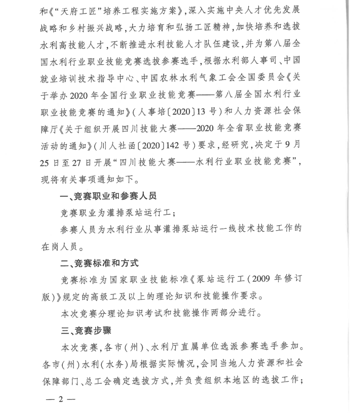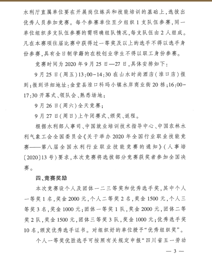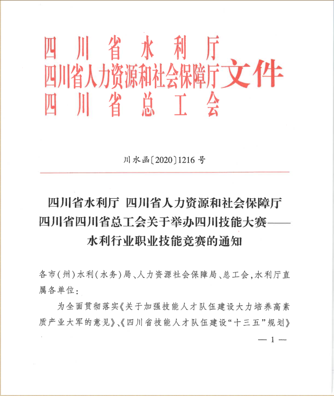 关于举办四川技能大赛水利行业职业技能竞赛的通知