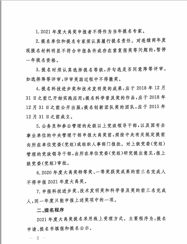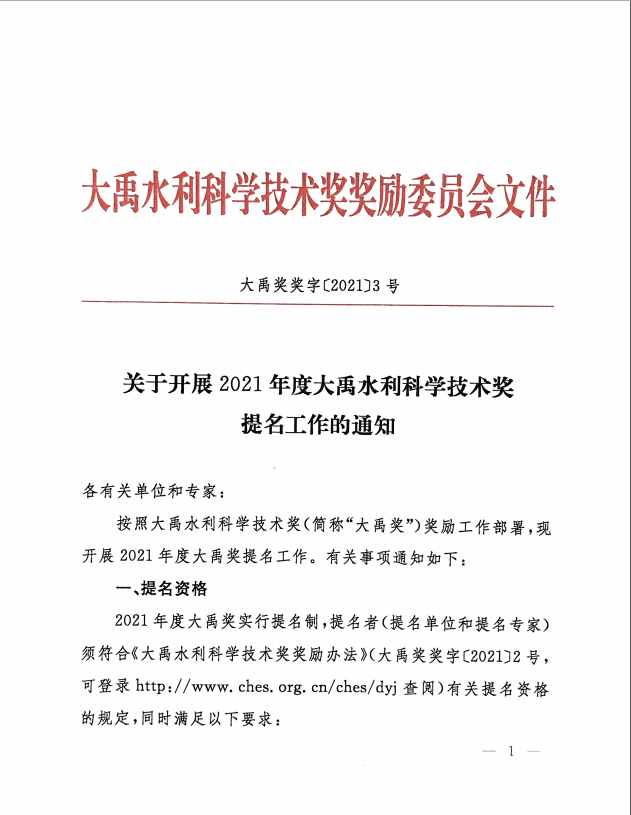 关于开展2021年度大禹水利科学技术奖提名工作的通知