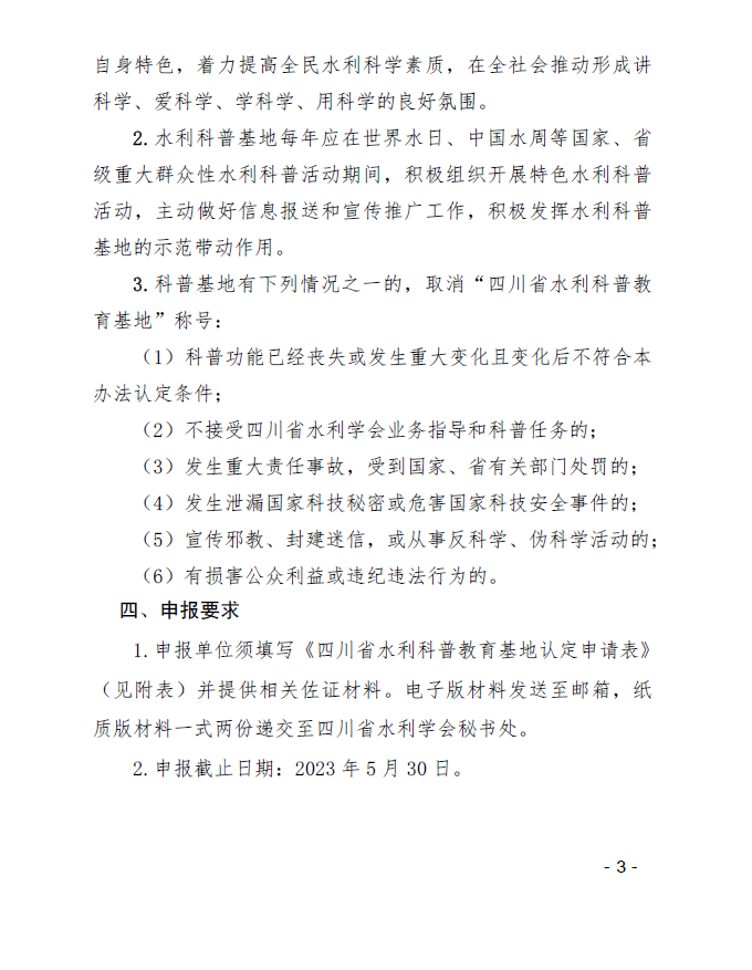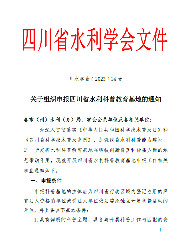 关于组织申报四川省水利科普教育基地的通知
