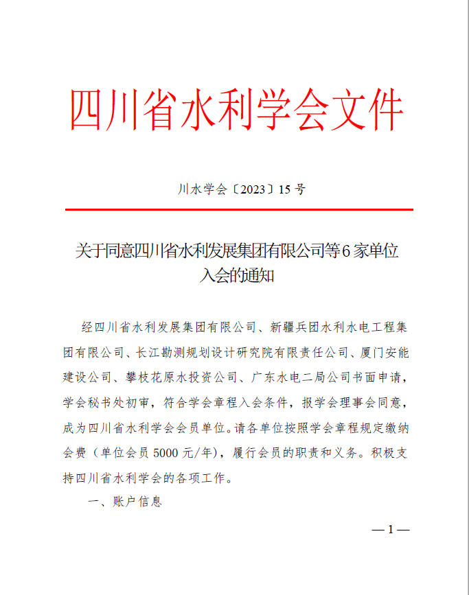 关于同意四川省水利发展集团有限公司等6 家单位 入会的通知