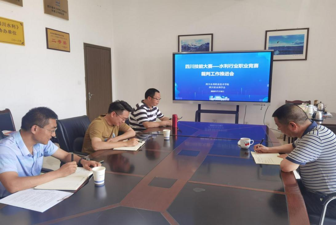 2023年7月10日,在行政楼C207会议室召开四川技能大赛--水利行业职业技能竞赛裁判工作推进会。学校张智涌副校长,科研处处长杨绍平,水利学院、测绘学院和资环学院等部门负责人参加了会议。