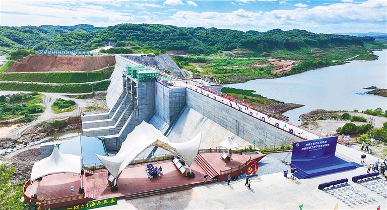 海南天角潭水利枢纽工程下闸蓄水现场 图片源自海南日报