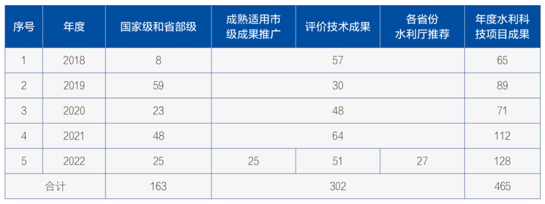 水利科技成果主要来源于水文学与水资源、水生态环境、防洪抗旱与减灾、遥感技术及应用、水利史与水文化、泥沙与水土保持、农村水利、节水、自动化与信息化、工程检测与监测、新能源、可持续水电等相关学科,许多成果经推广已被广泛应用于实际生产中。水利科技成果的推广转化不仅取得了显著的经济效益,也取得了广泛的生态效益,更进一步提高了水利科技整体水平。