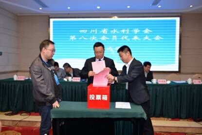 会议的第三项议程,是按照学会《章程》及《选举办法》规定,全体会员代表对学会第八届理事会进行投票选举。首先由水利厅人事处牟春处长宣读《四川省水利厅关于同意省水利学会第八届理事会组织构架方案批复》文件。接着在宣读选举办法后,全体会员代表有序的进行了投票,现场公开唱票、计票并宣布选举结果。
