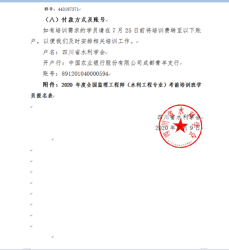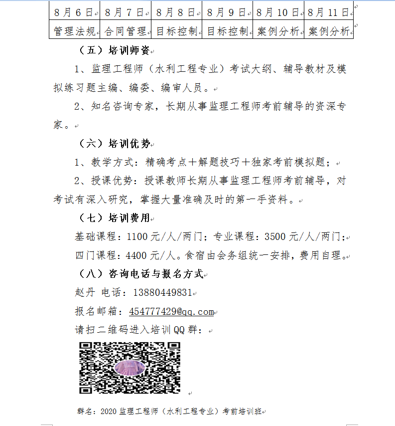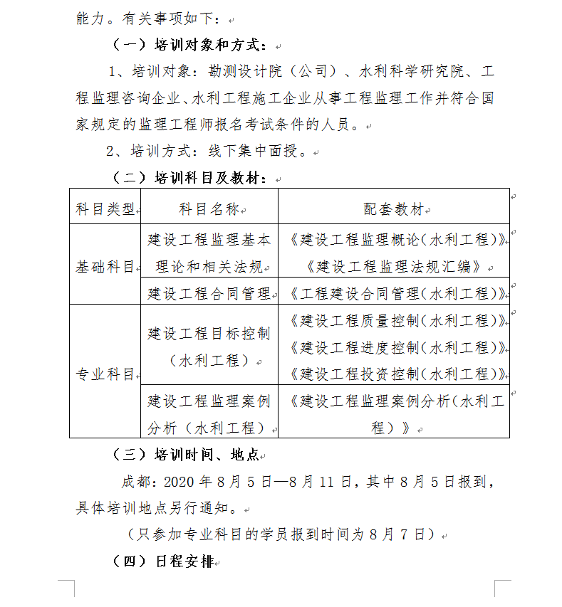 2020年度全国监理工程师(水利工程专业)考前培训班学员报名表